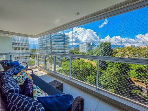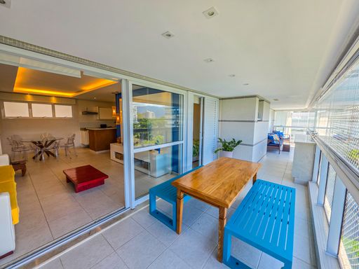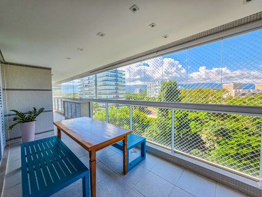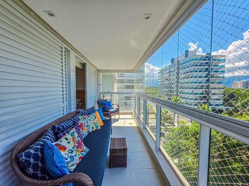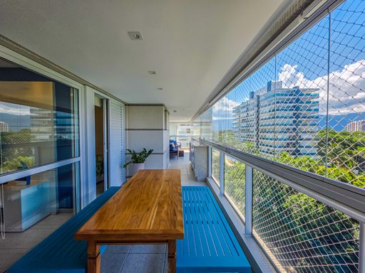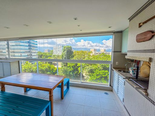 - Varanda gourmet equipada com churrasqueira, fechamento em vidro e tela de proteção