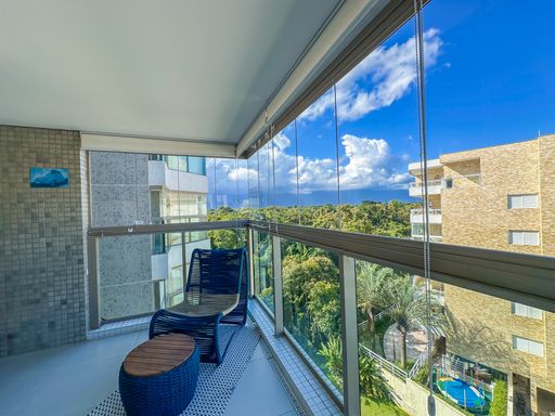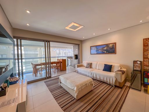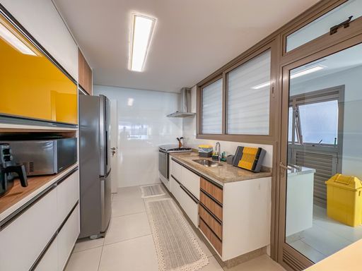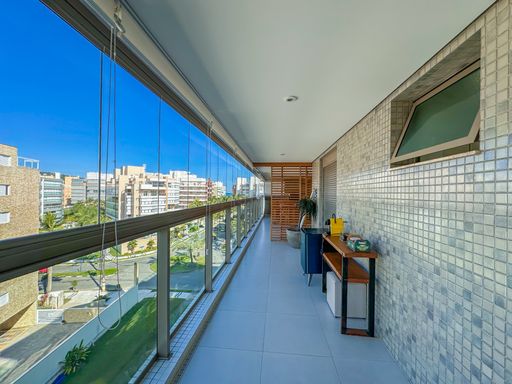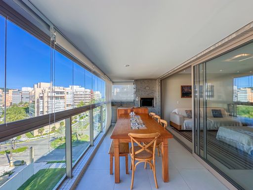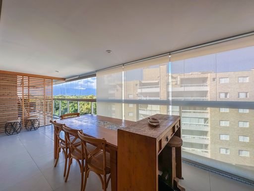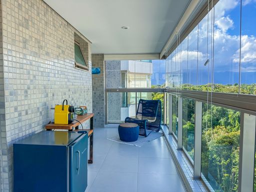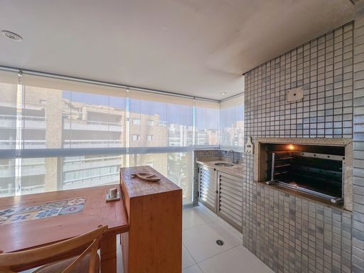 - Varanda gourmet equipada com churrasqueira e fechamento em vidros e persianas