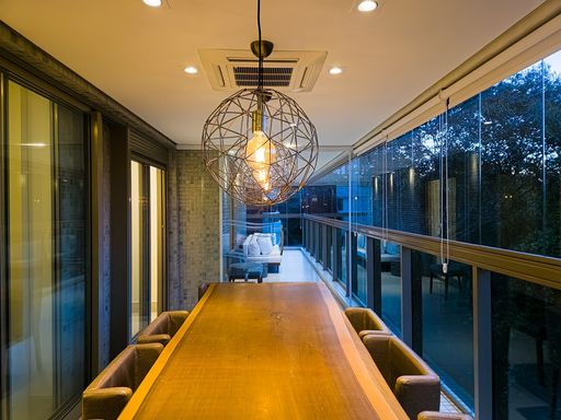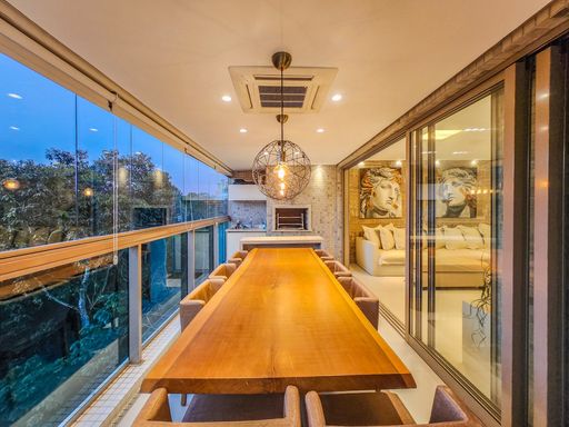 - Varanda gourmet equipada com churrasqueira e envidraçadada