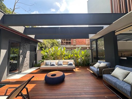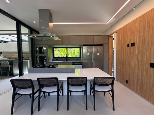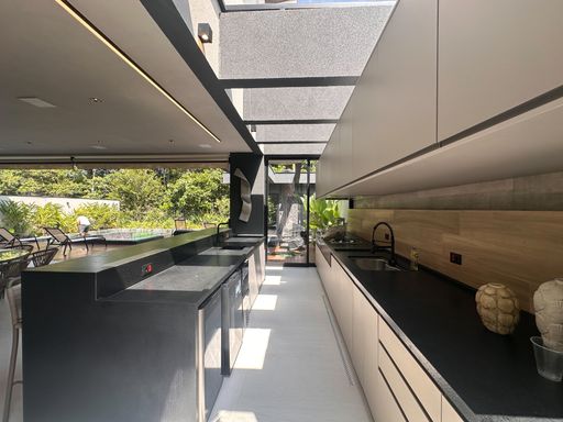 - Pergolado com TV, balanço, churrasqueira Alluma à gás e carvão, fogão Cooktop 2 bocas, chopeira, frigobar e máquina de gelo.
