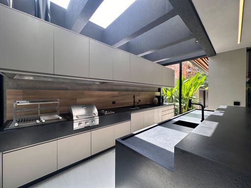 - Cozinha estilo ilha com eletrodomésticos Eletrolux
