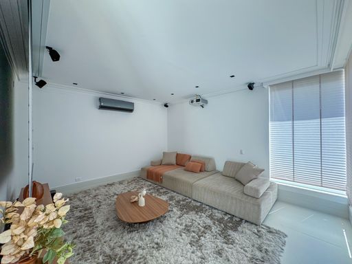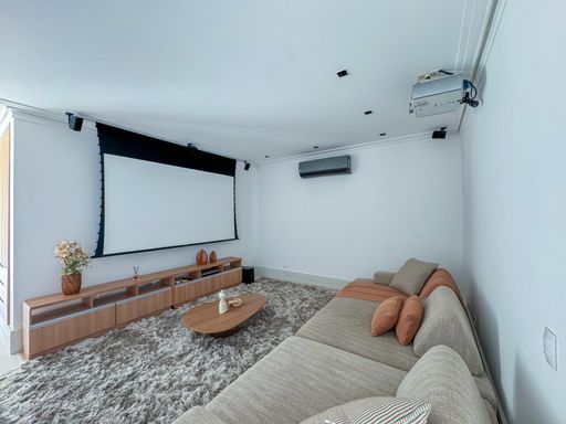 - Sala de cinema com projetor e tela