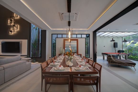 - Sala de estar e sala de jantar para 12 pessoas