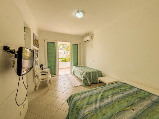 Bar Rapanui na praia e muito espaço com coqueiros, duchas de água doce, espreguiçadeiras, mesas e cadeiras com guarda-sóis para seu conforto e diversão, serviço de praia e guaritas de segurança com controle de acesso para praia x condomínio.