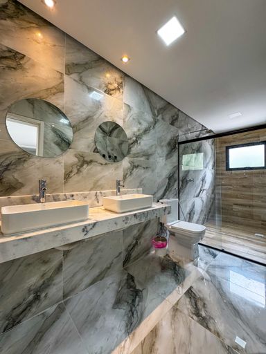 Inclui banheiros, lavabos, suítes e demi-suítes