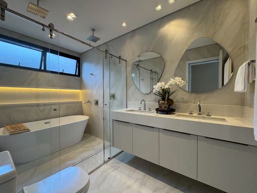 - 1 suíte master com closet e banheira