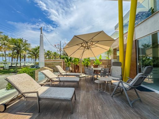 Bar Rapanui na praia e muito espaço com coqueiros, duchas de água doce, espreguiçadeiras, mesas e cadeiras com guarda-sóis para seu conforto e diversão, serviço de praia e guaritas de segurança com controle de acesso para praia x condomínio.