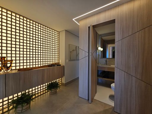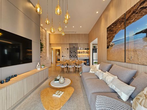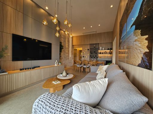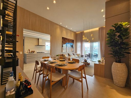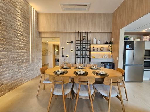 - Living com pé-direito duplo, totalmente integrado às salas de estar e jantar, com adega de vinhos.