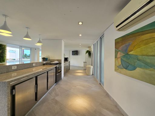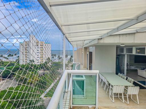 - Varanda gourmet com vista para o mar, e equipada com tela de proteção
